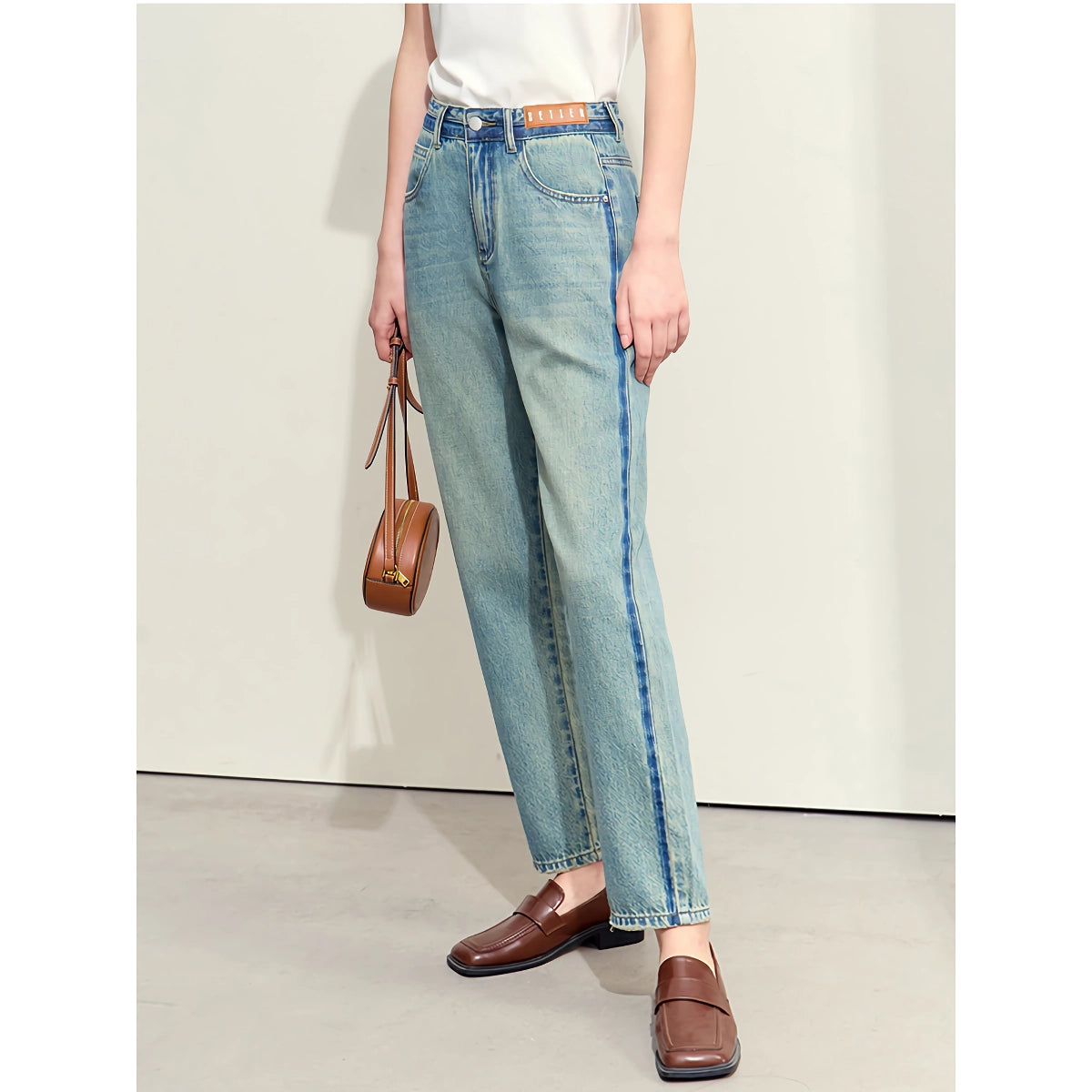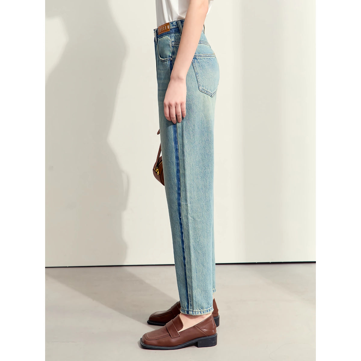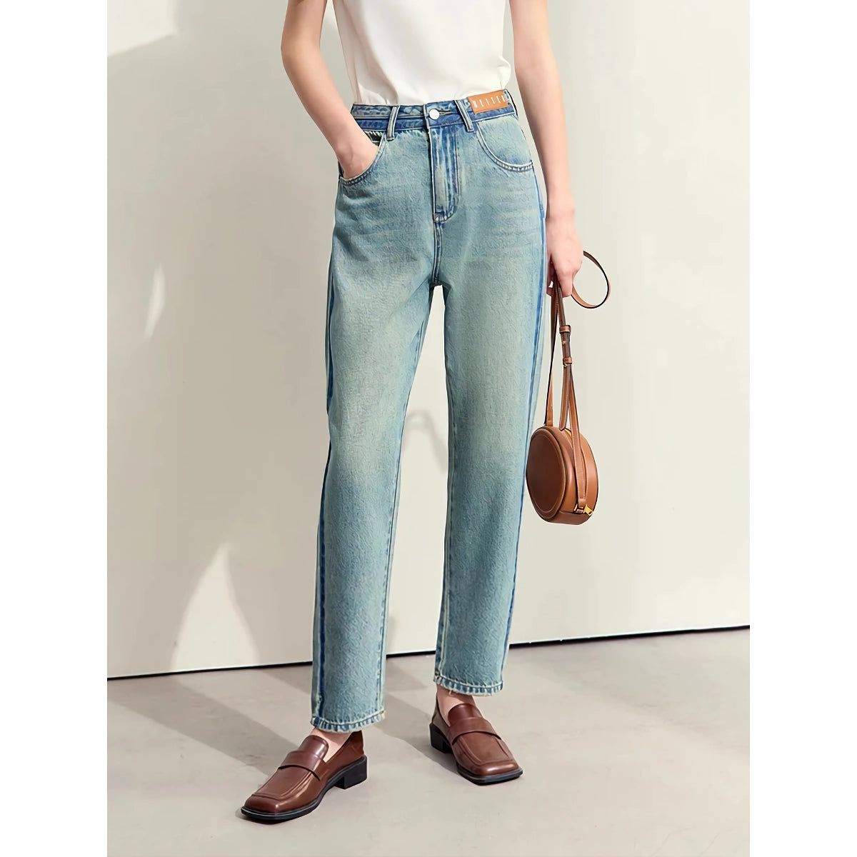 Minimalist Women's Patchwork Denim Tapered Jeans - Retro Style - XL / Retro Blue is backordered and will ship as soon as it is back in stock.