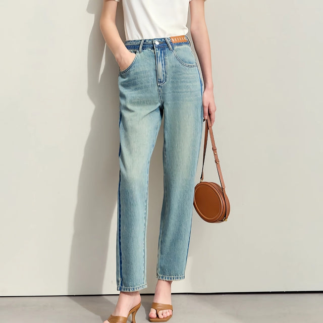 Minimalist Women's Patchwork Denim Tapered Jeans - Retro Style