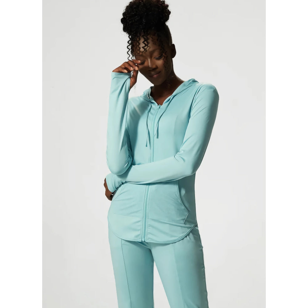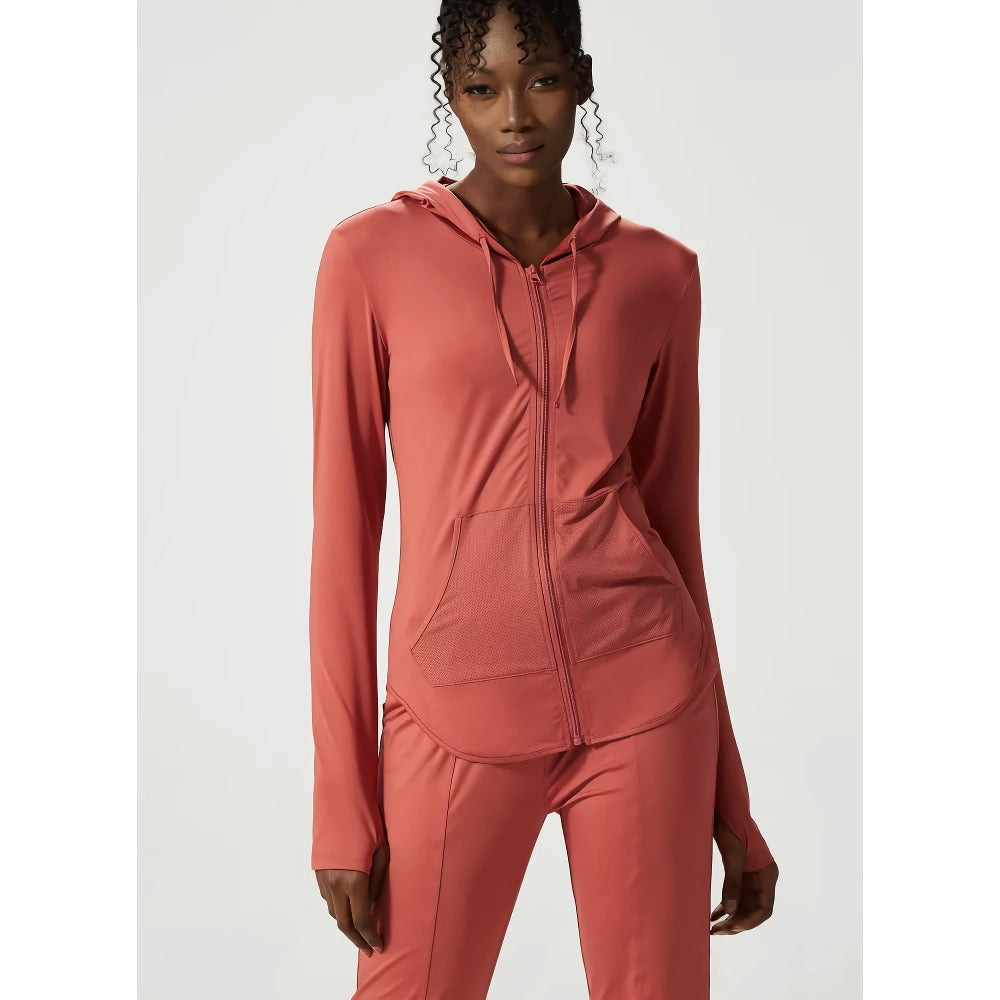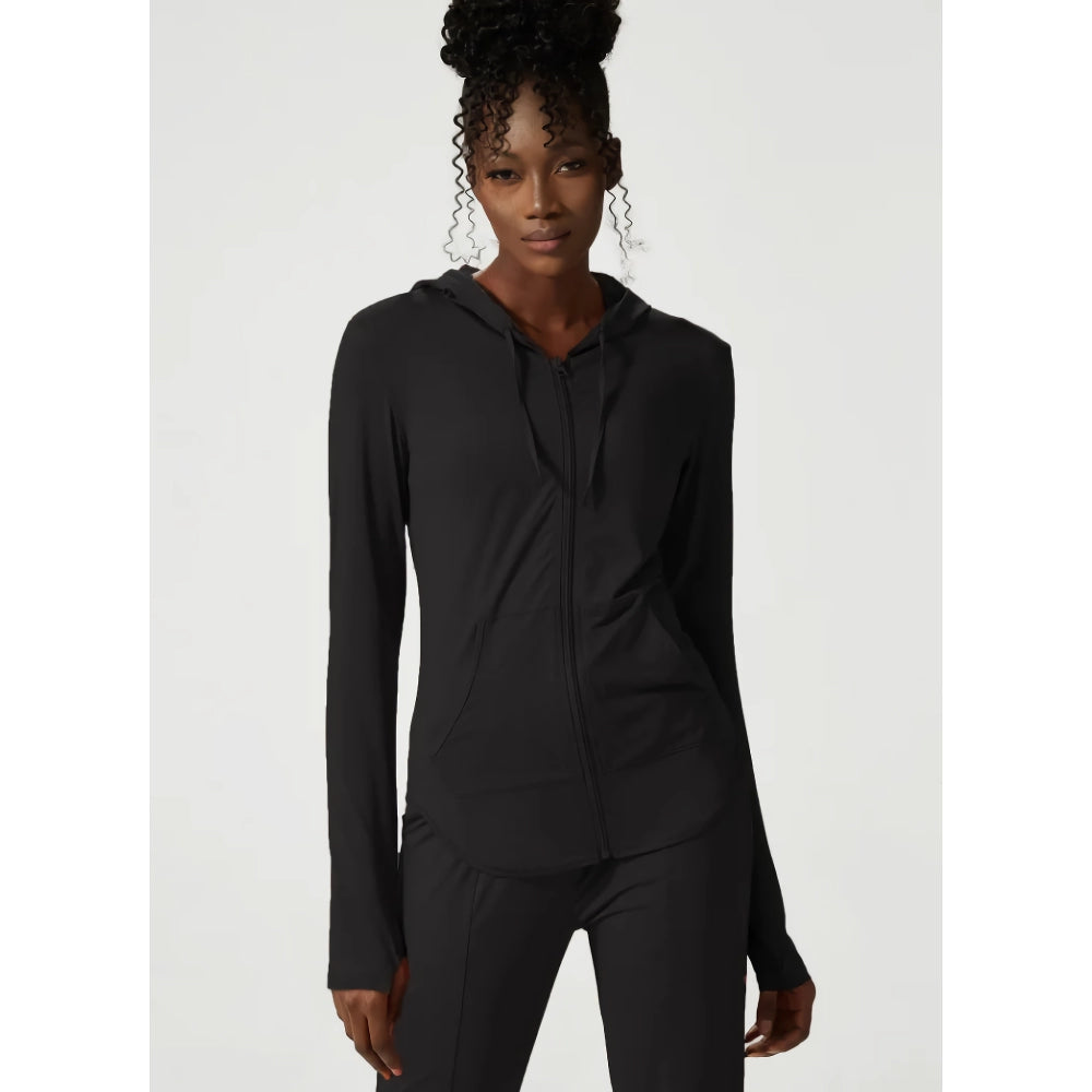This jacket isn’t just about performance; it’s about enhancing your entire workout experience. The lightweight yet durable fabric feels soft against your skin, while the breathable design ensures you stay comfortable, no matter the activity. The hood provides extra coverage when you need it, and the thumb holes add a touch of functionality that runners and yogis will especially appreciate.