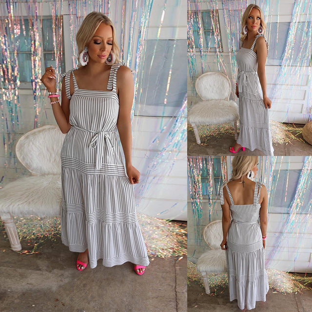 European And American Women's Clothing Striped Splicing Sling Casual Dress