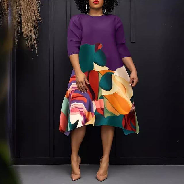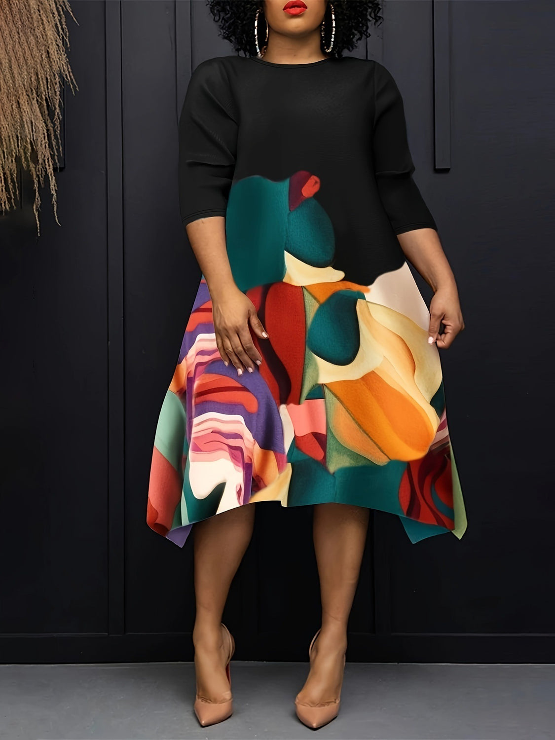 Plus Size Irregular Pattern Print Confidence Casual Straight-leg Dress