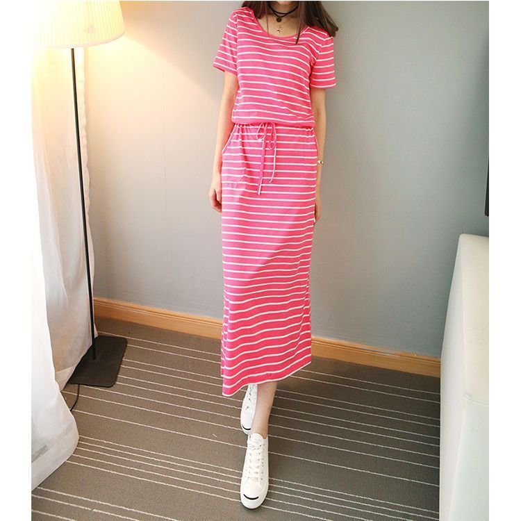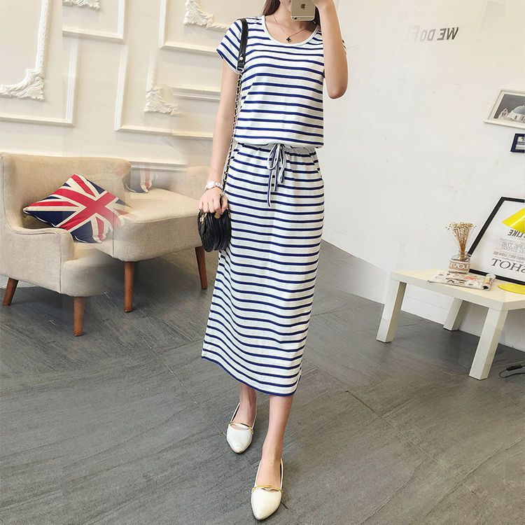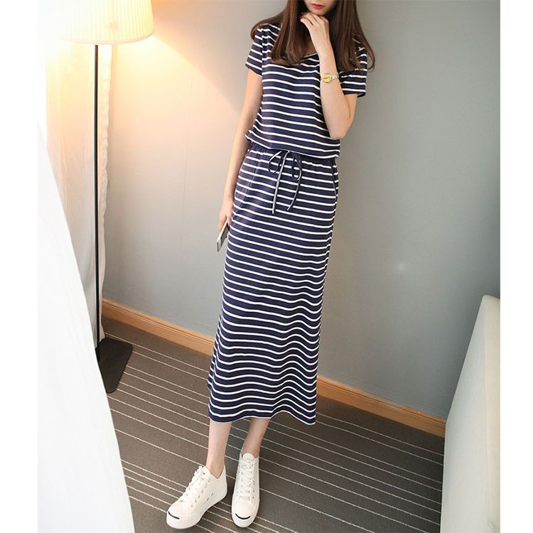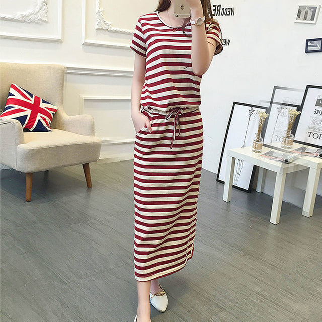 Round Neck Striped Cinched Plus Size Short Sleeve Dress