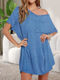Single Side Chest Pocket Loose Casual And Comfortable T-shirt Dress - Blue / S is backordered and will ship as soon as it is back in stock.