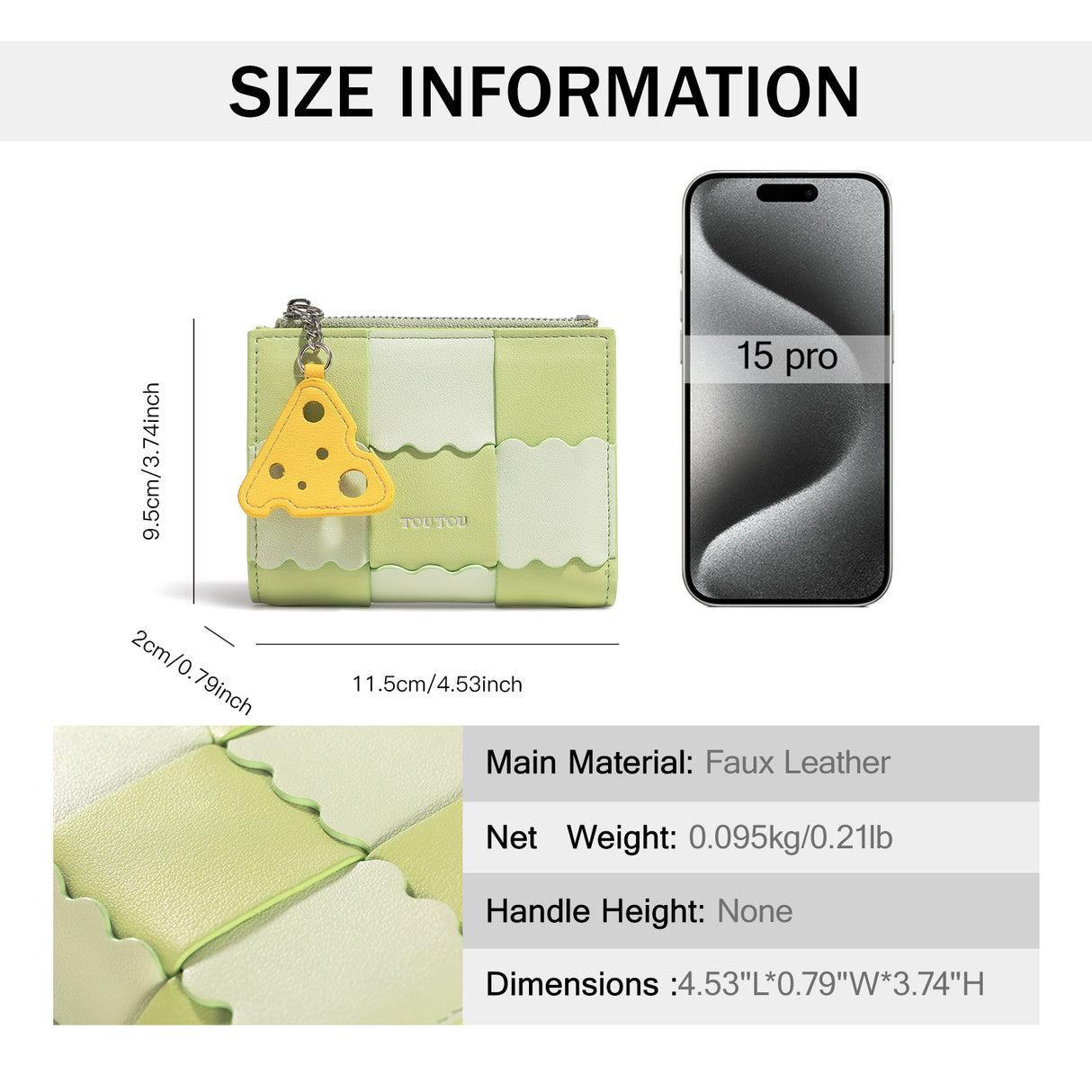 Elevate your accessory game with our Luxury Women's Short Wallet. Crafted from premium microfiber synthetic leather, this wallet is not only a chic fashion statement but also a practical addition to your daily essentials. Its compact size of 4.53 inches in both length and height makes it the perfect fit for any handbag, ensuring you can carry it with ease wherever you go. The charming cheese pendant adds a playful touch, making this wallet stand out in the crowd.Features that Cater to Your Needs