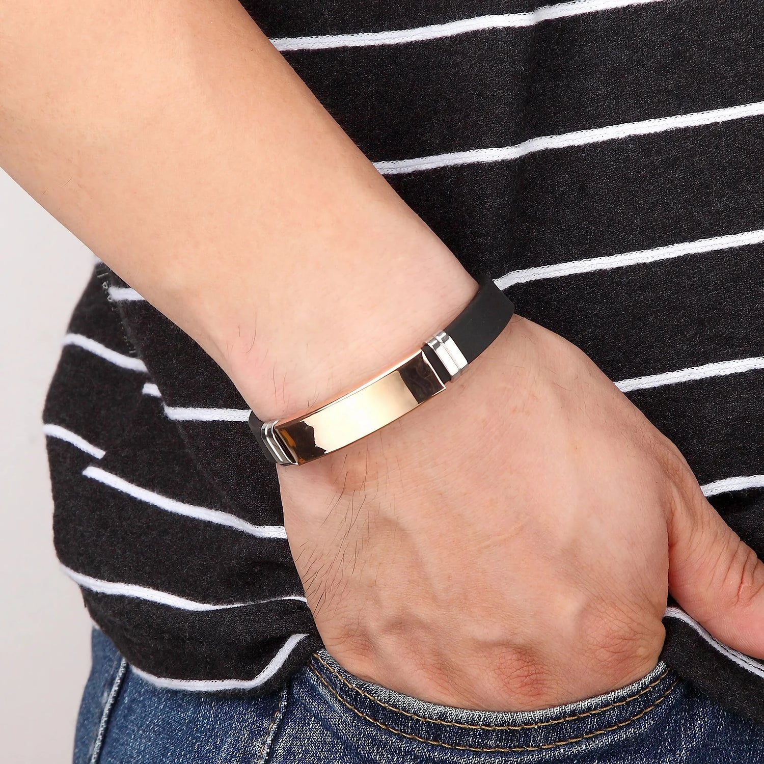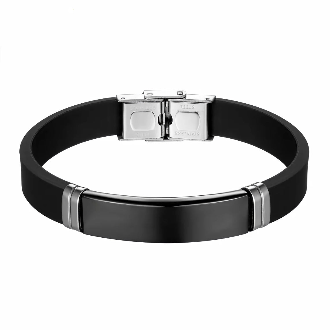 Don't wait to add this stylish bracelet to your collection. Order your Unisex Stainless Steel Silicone Initial Bracelet today and experience the perfect blend of elegance and durability. Click the "Add to Cart" button now and make a statement with your new favorite accessory.