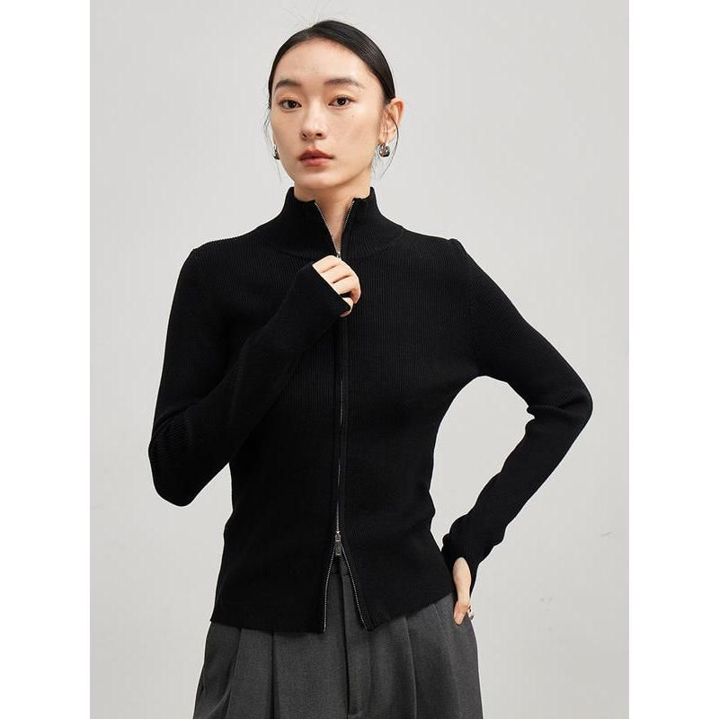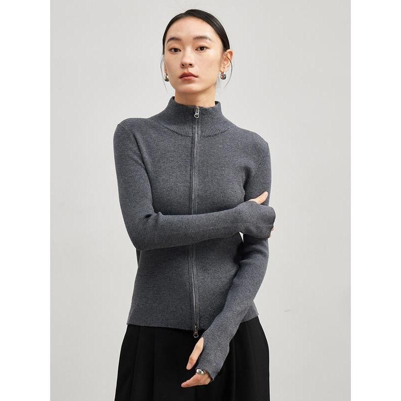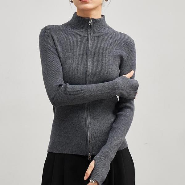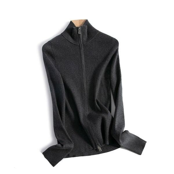 Embrace the perfect blend of style and comfort with our Stand Collar Zip Cardigan, designed specifically for the modern, fashion-conscious woman. Tailored to fit seamlessly into both your professional and casual wardrobe, this cardigan is a must-have for those who value elegance and versatility.