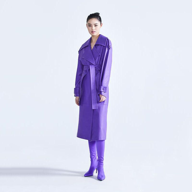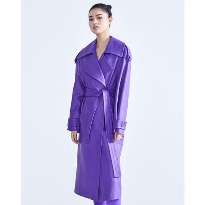 Introducing our latest arrival - the Elegant Purple Faux Leather Trench Coat, a perfect blend of luxury and practicality for the modern woman. Crafted with meticulous attention to detail, this coat is a must-have for those who appreciate high street style and quality. Whether you're attending a formal event or simply enjoying a night out, this trench coat adds a touch of sophistication to any outfit.