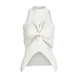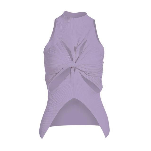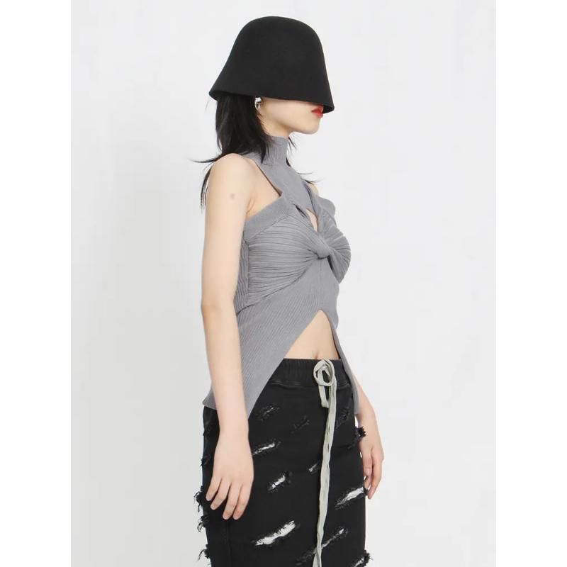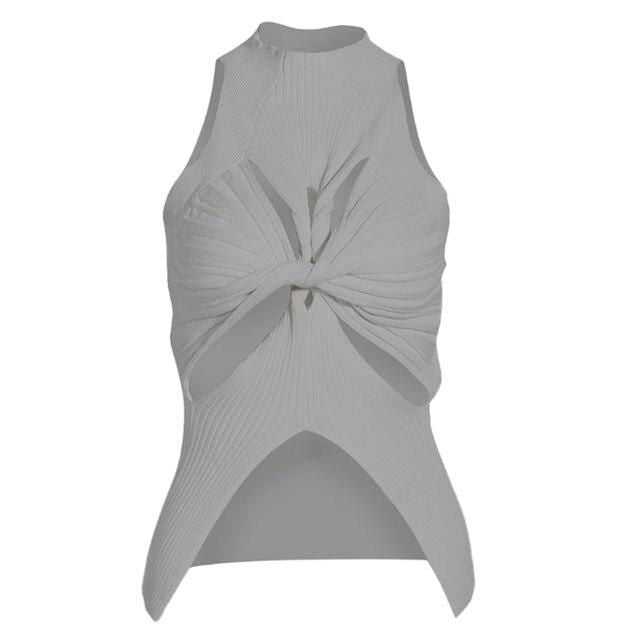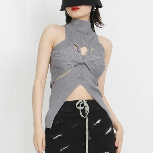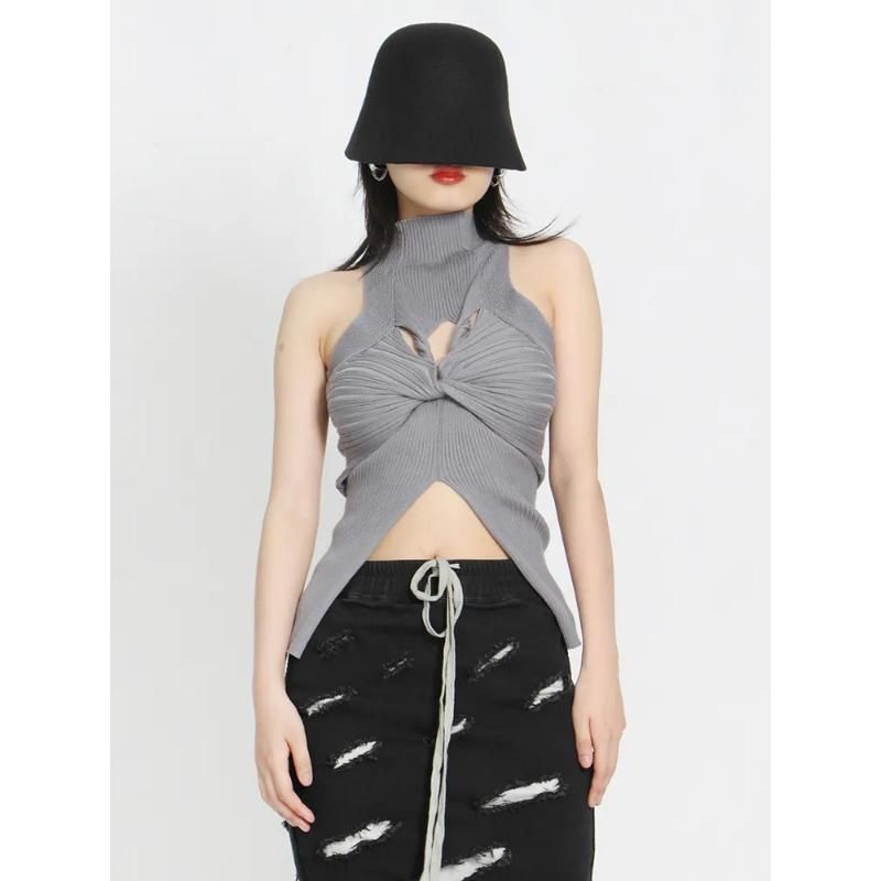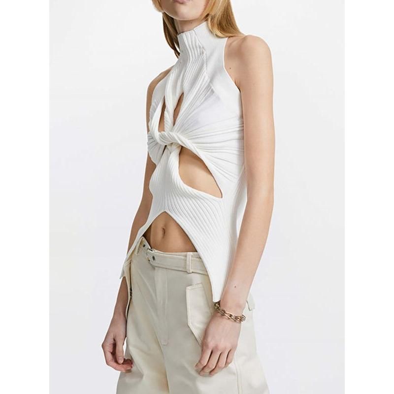 This elegant tank top is crafted from high-quality acrylic, ensuring both comfort and durability. The high collar and unique hollow-out design add a touch of sophistication, while the sleeveless style makes it perfect for warmer days or layered looks. Its solid color ensures versatility, making it easy to pair with any outfit.- Fabric: Soft, knitted acrylic for ultimate comfort.