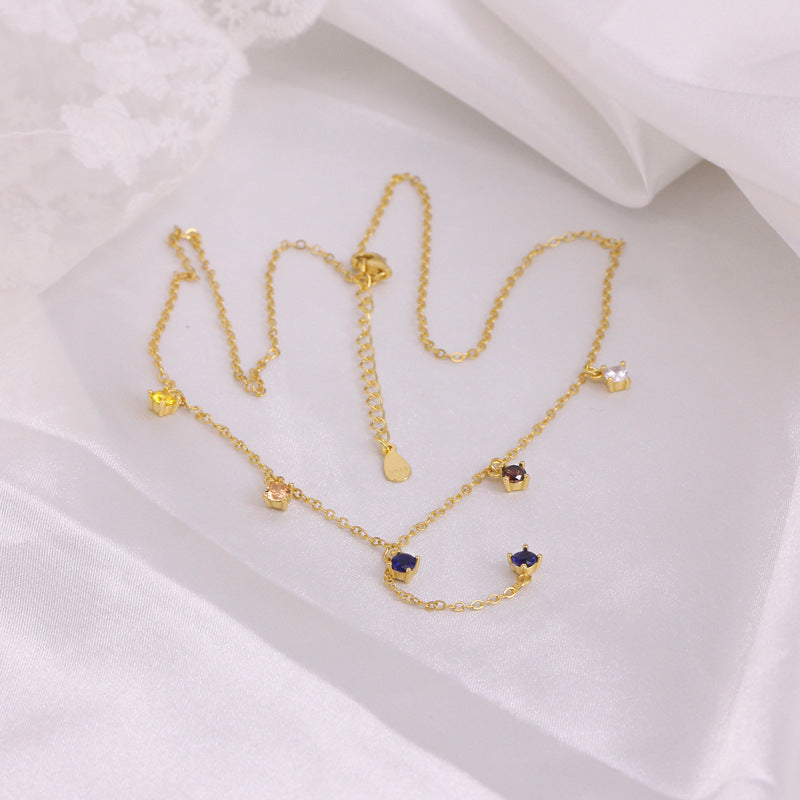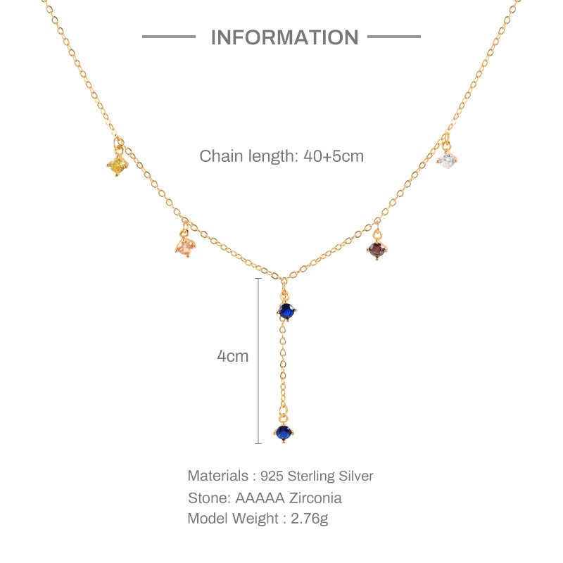 Women's S925 Sterling Silver Colored Zircon Necklace