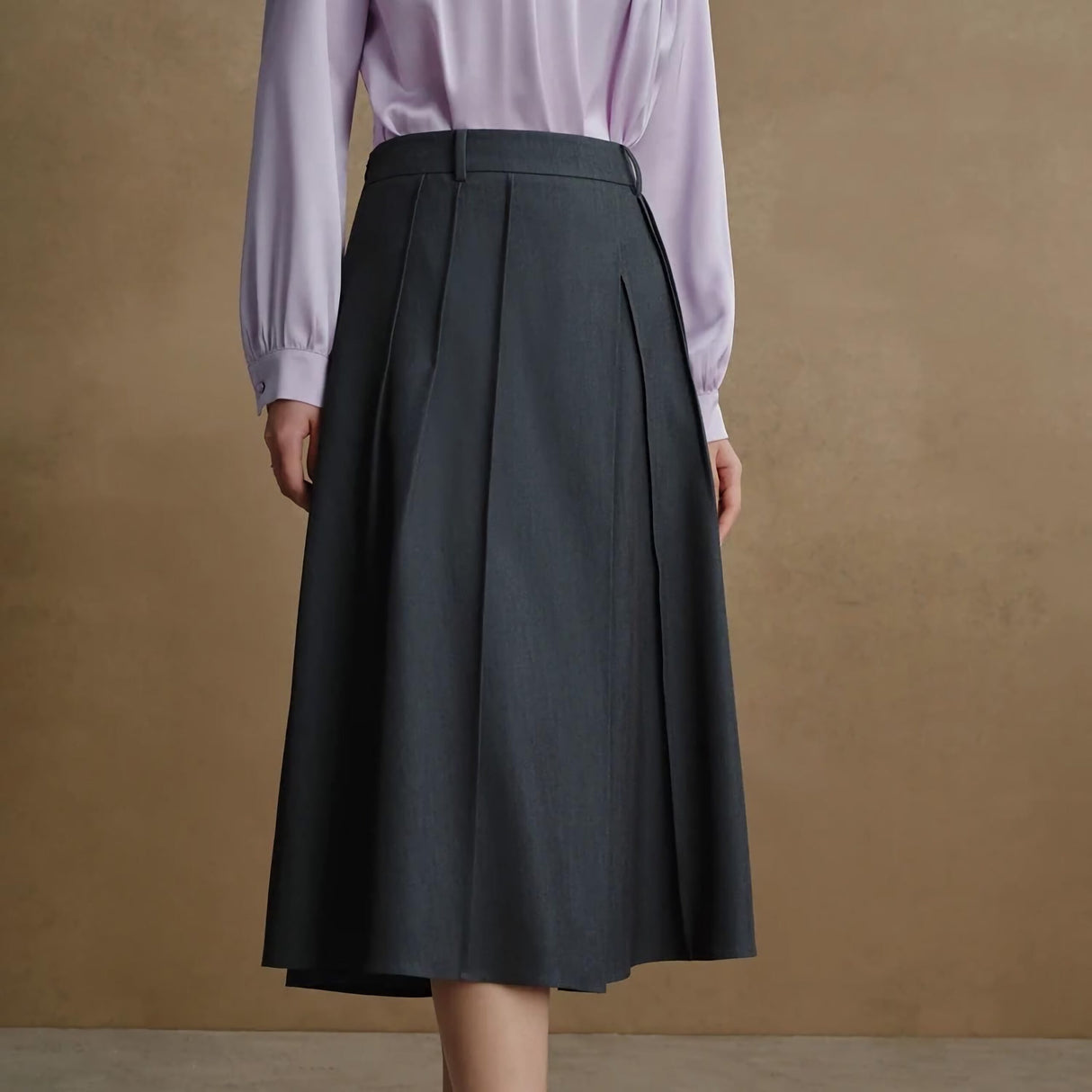 Introducing the Office Lady Dark Grey A-Line Skirt, a perfect blend of sophistication and modern style. Designed for the professional woman, this high waist, mid-calf pleated skirt with an asymmetrical cut brings a unique flair to your office attire. Crafted to offer both comfort and elegance, this skirt will be your go-to piece for the autumn and winter seasons.