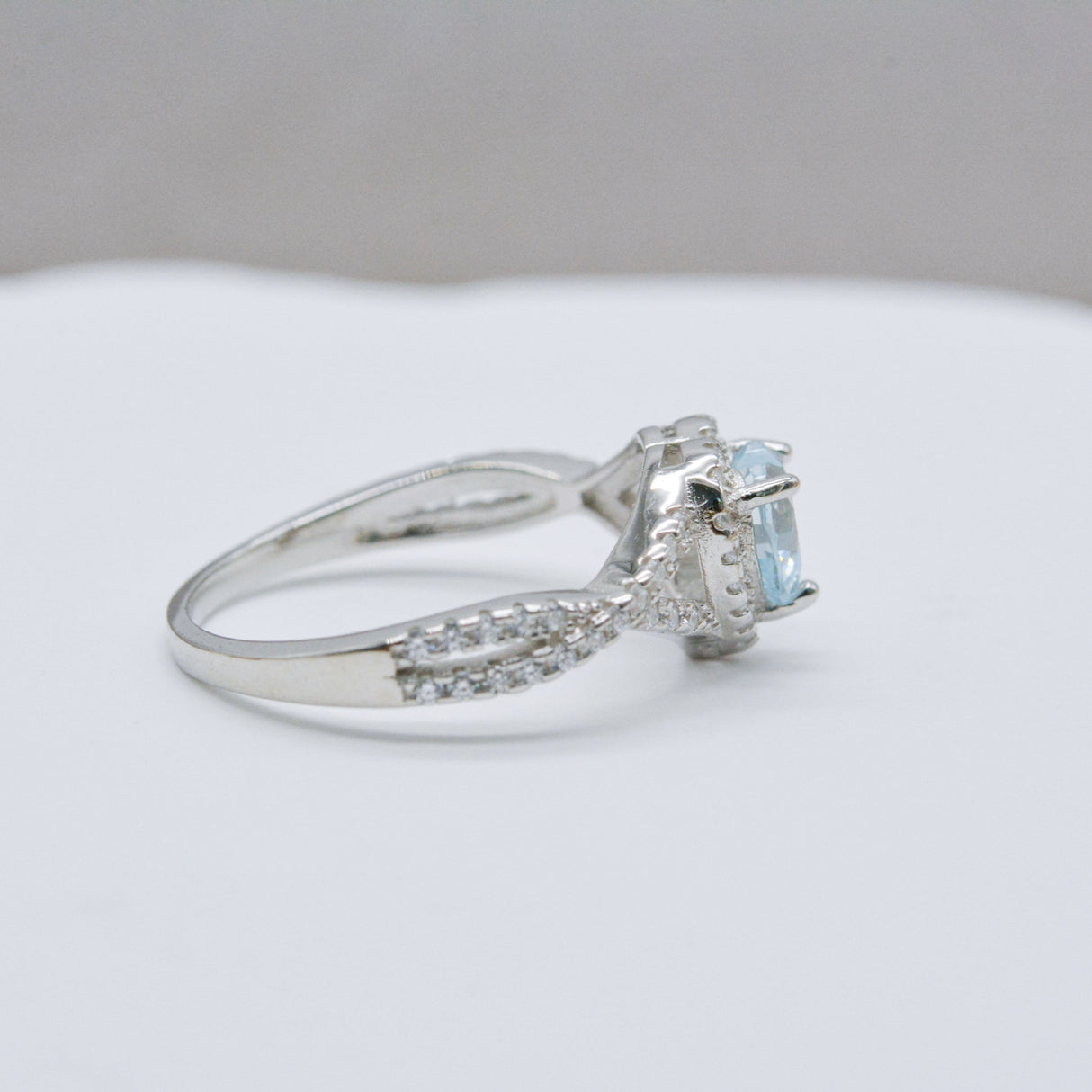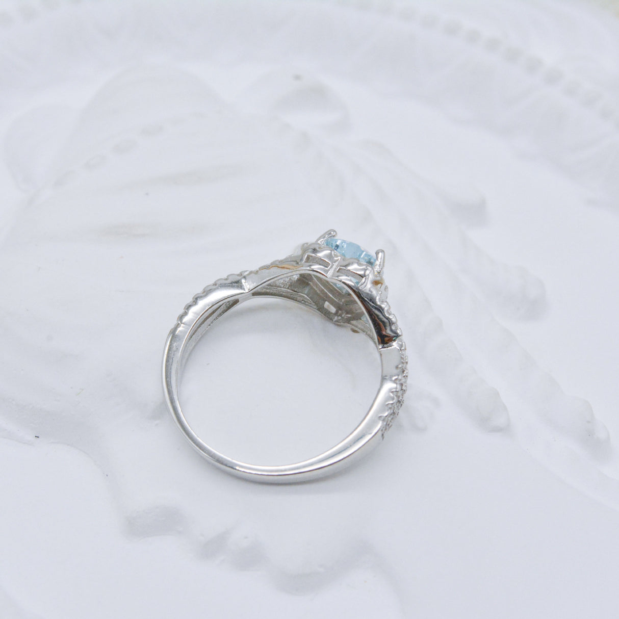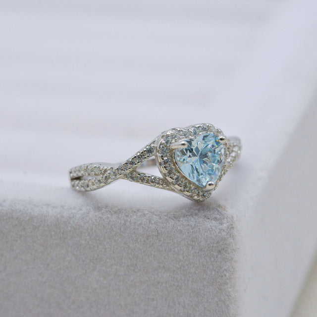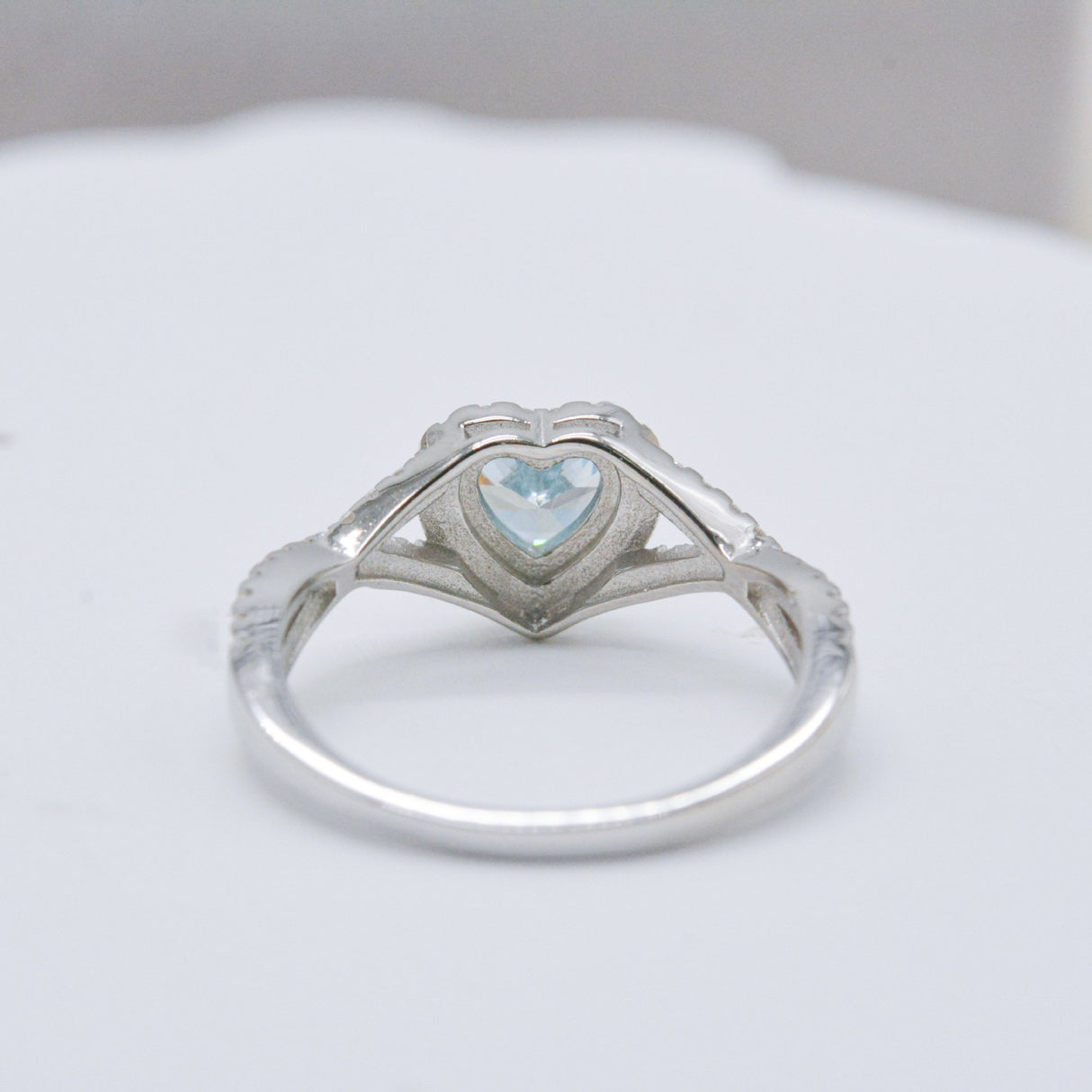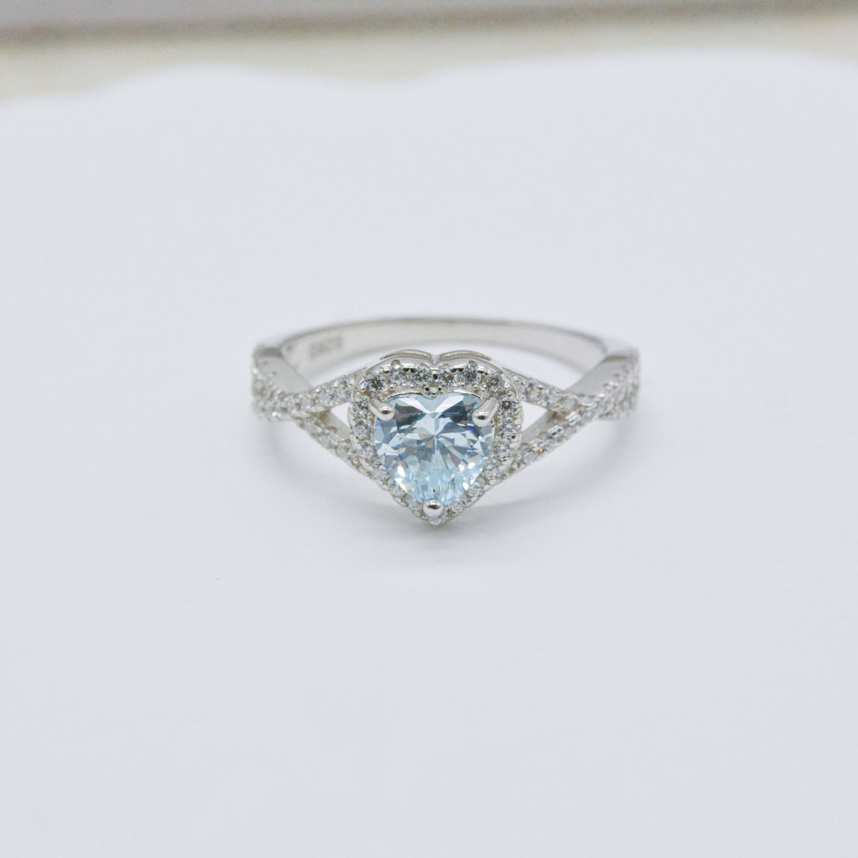 Sterling Silver S925 Light Sea Blue Zircon Heart-shaped Rose Gold Jewelry High Quality Exquisite Light Luxury Women's Ring