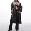 PU Leather Overcoat with Detachable Fur Collar & Belt