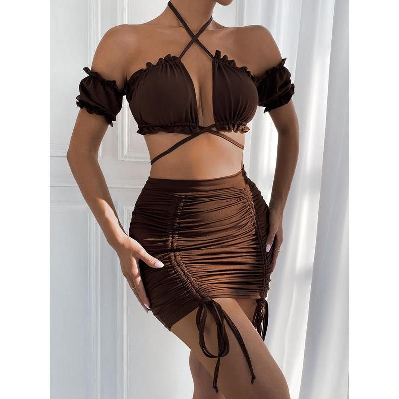 This dress set is your go-to choice for summer celebrations, whether it's a rooftop party, beach gathering, or a night out with friends. The 2 PCS Sexy Ruffle Mini Dress Set is designed to make you feel empowered, confident, and effortlessly chic.