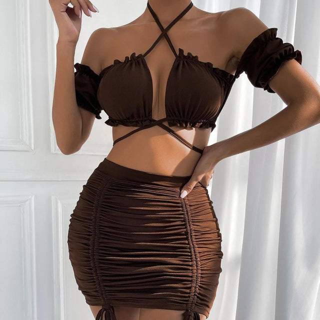 Unleash Your Allure with the 2 PCS Sexy Ruffle Mini Dress Set