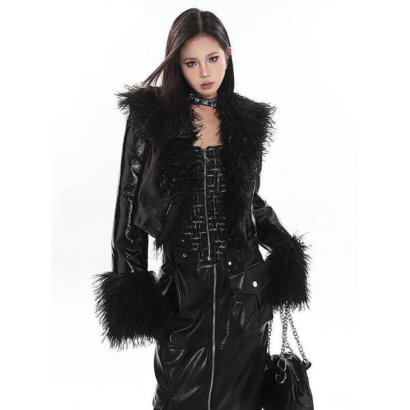 Introducing our latest arrival that redefines style and comfort - the Women's Chic Leather Jacket with Plush Suede Collar. This stunning piece is a perfect blend of elegance and trendy streetwear, crafted to enhance your wardrobe in every season. Its slim, tailored design accentuates your silhouette, making it an essential for every fashion-forward woman.