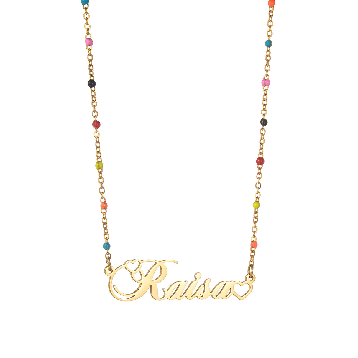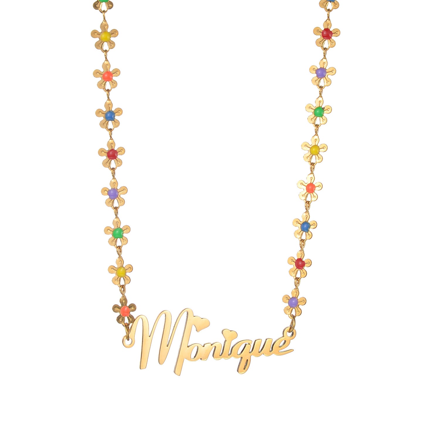 New Drip Oil Flower Splice Necklace Fashion Stainless Steel Name Pendant
