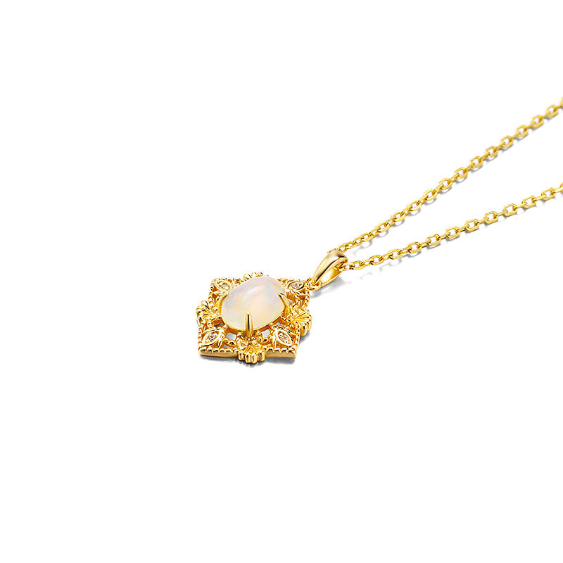 Original Bead Edged Hollow Diamond Pendant Egg Shaped Necklace - Retro African Opal pendant is backordered and will ship as soon as it is back in stock.