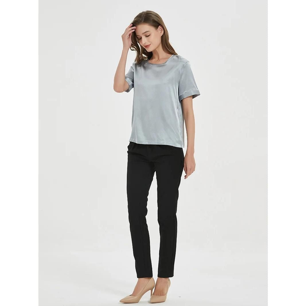 What sets this tee apart is its unique blend of elegance and practicality. The high silk content provides a luxurious feel and a subtle sheen, making it stand out from regular T-shirts. The addition of spandex ensures a comfortable fit that moves with you. The tee's classic style, combined with its premium material and construction, makes it a long-lasting addition to your wardrobe. It's not just a piece of clothing; it's an investment in your style and comfort.Benefits of Our Silk Tee