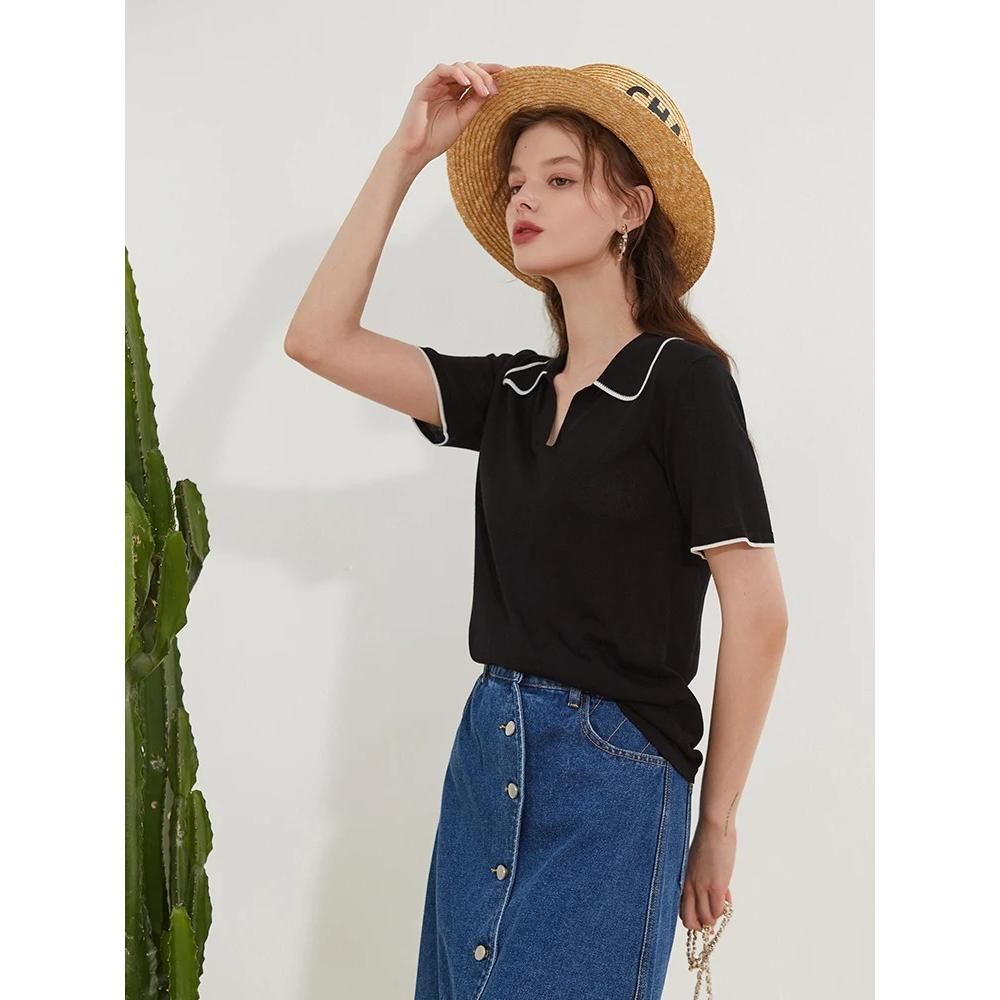 What makes this product special is its unique fabric blend. Silk offers a luxurious feel and a subtle sheen, while lyocell provides durability and moisture-wicking properties. This combination not only feels wonderful against your skin but also holds up well throughout your busy day. The knitted fabric adds a cozy yet professional touch, setting this T-shirt apart from your typical office wear.Embrace Your Professional Elegance