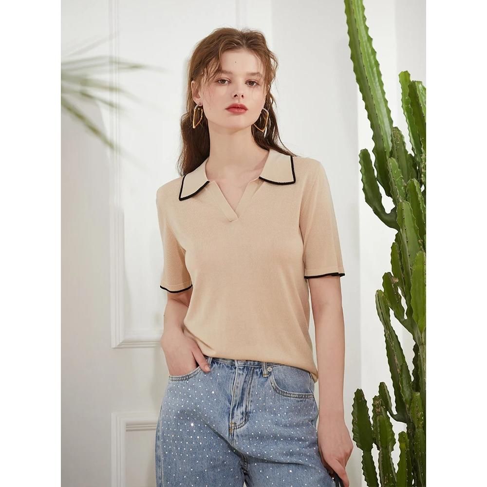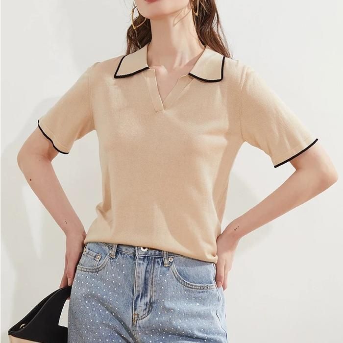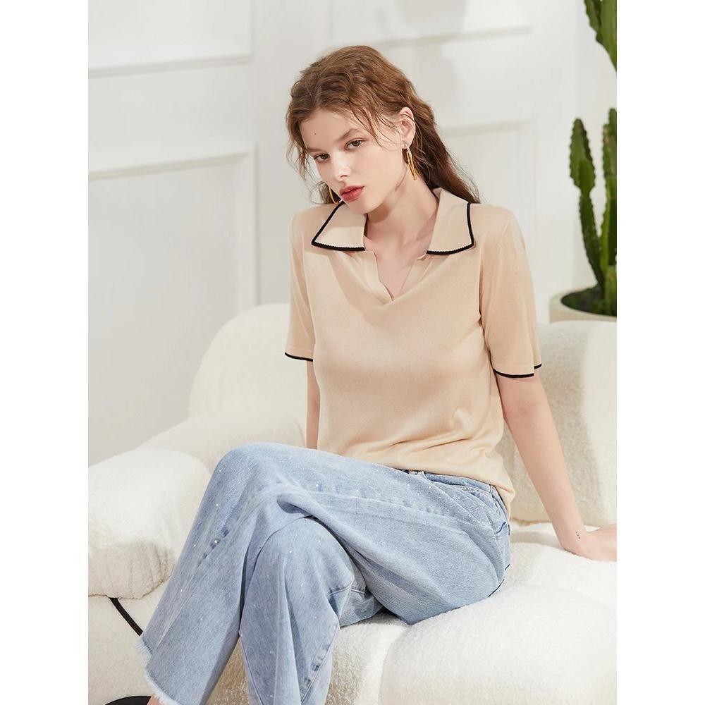 Ideal for spring and summer, this knitted T-shirt is your go-to choice for both comfort and style in warmer months. Whether it's a crucial meeting, a regular day at the office, or a casual after-work event, this top keeps you looking and feeling great.Why Choose Our Silk-Blend T-Shirt?