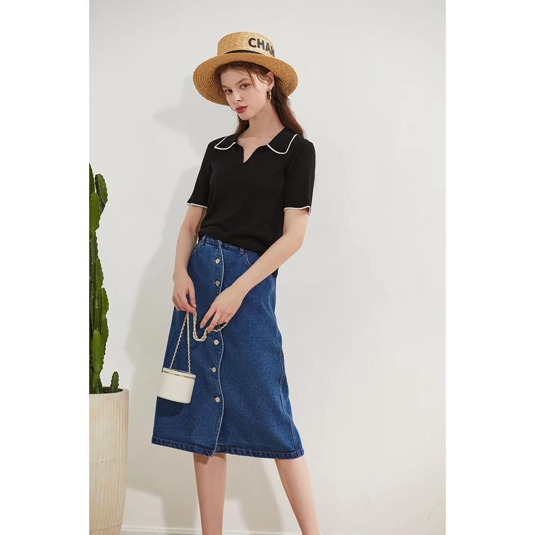 Elevate your wardrobe with our Elegant Silk-Blend Knitted T-Shirt, a perfect blend of style and comfort for the modern office lady. This chic top, crafted from a luxurious mix of 7.6% silk and 92.4% lyocell, offers a sophisticated look without compromising on comfort.Features that Define Elegance