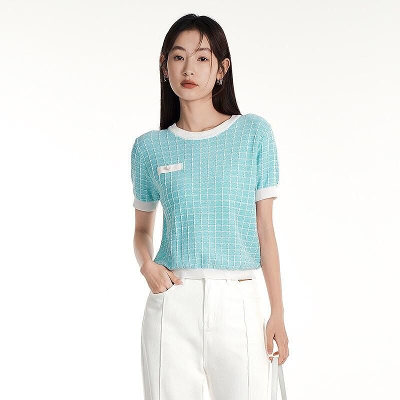 Whether you're heading to a picnic, a day out with friends, or just enjoying a casual day, this knitwear top is your go-to choice. Its slight stretch ensures a comfortable fit for all body types, while the short clothing length adds a touch of modernity and style. The top's versatility makes it a great match with jeans, shorts, or skirts, allowing you to create a range of outfits.