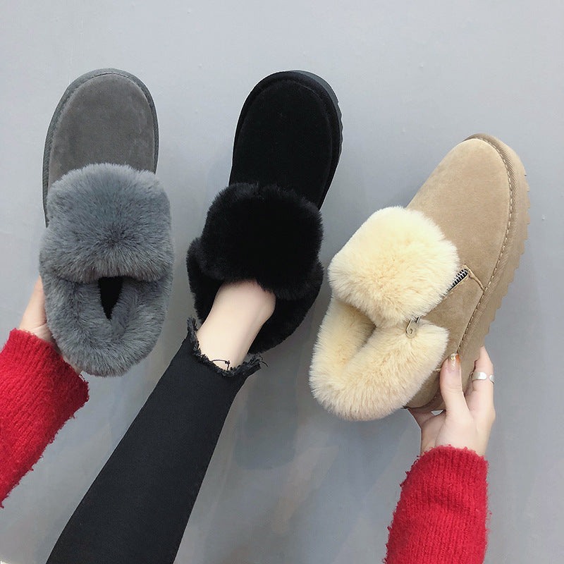 Warm Fringe Suede Beige Low Top Zipper Metal Buckle Platform Cotton Boots - Black / 35 is backordered and will ship as soon as it is back in stock.