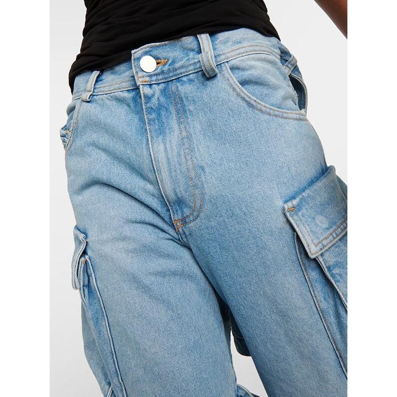 High Waist Spliced Cargo Denim Trousers - XS is backordered and will ship as soon as it is back in stock.