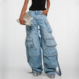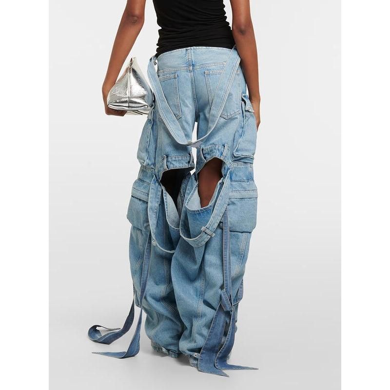 Introducing our latest addition to your wardrobe essentials: High Waist Spliced Cargo Denim Trousers. Merging comfort with streetwear chic, these trousers are perfect for women who value both style and functionality. Their unique patchwork pockets and eye-catching hollow-out design will ensure you stand out in any crowd.Key Features