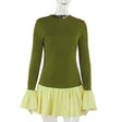 Bud Swing Long Sleeve Dress Female Contrast Color Slim Fit