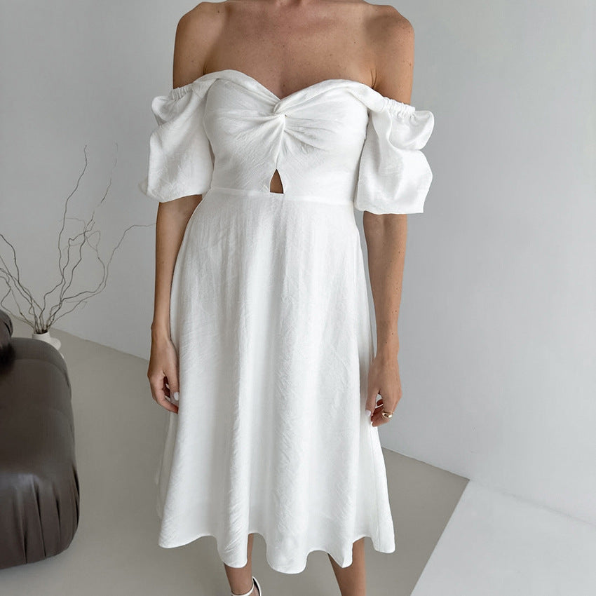 French Elegant Lantern Sleeve Off-neck Dress