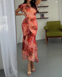 Women's V-neck Pleated Print Dress - Pink / S is backordered and will ship as soon as it is back in stock.