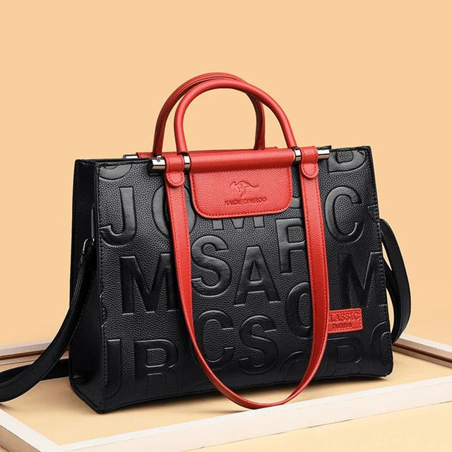 2023 Elegant Large Capacity Soft Leather Tote with Embossed Lettering