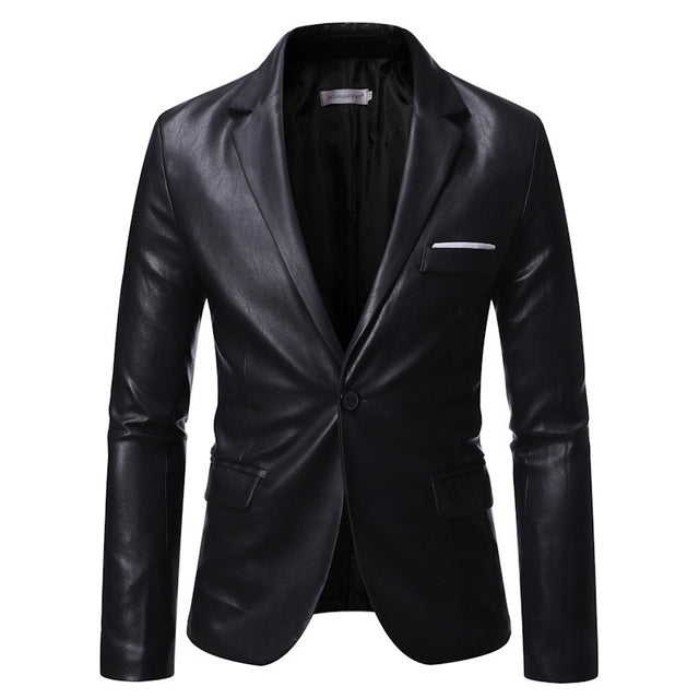 Pu Leather One Button Single Suit Jacket Small Men's Plus Size