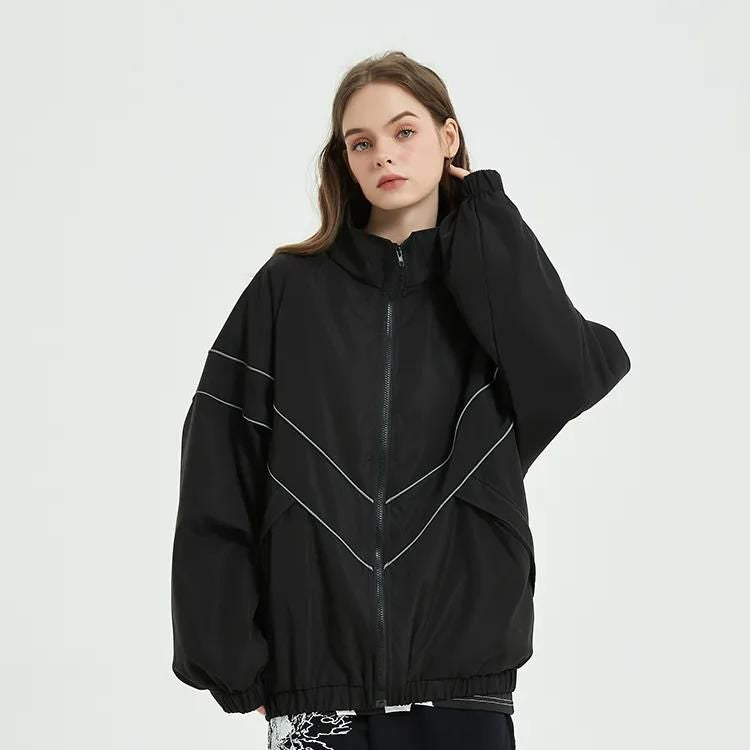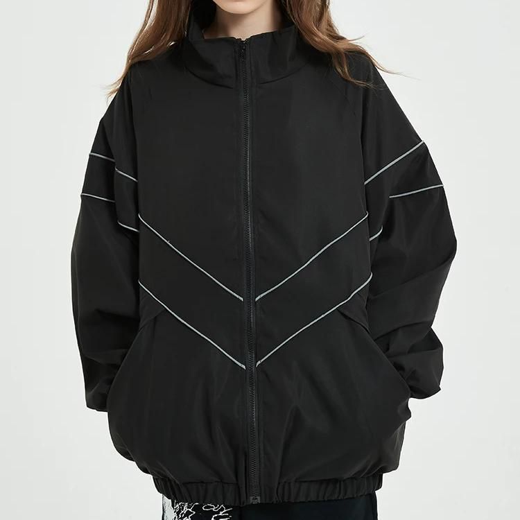 Our jacket is designed with meticulous attention to detail. It features a stylish stand collar and a convenient zipper closure, ensuring a blend of comfort and fashion. The reflective stripes not only add a unique touch but also enhance visibility in low-light conditions, making it an ideal choice for evening outings. The polyester lining ensures durability and comfort, while the standard thickness provides the right balance of warmth without being overly bulky.Why Choose This Jacket?