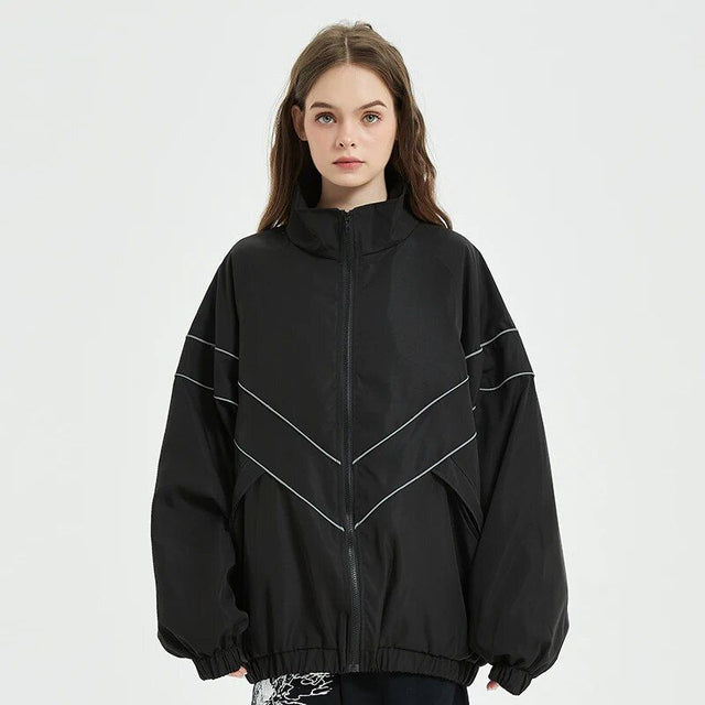 Embrace the cool vibes of the season with this reflective striped hip hop jacket. Don't let size worries hold you back - provide us your height, weight, and bust size, and we'll find the perfect fit for you. Remember, slight color variations are part of its unique charm. Add this essential piece to your wardrobe and step out in style!
