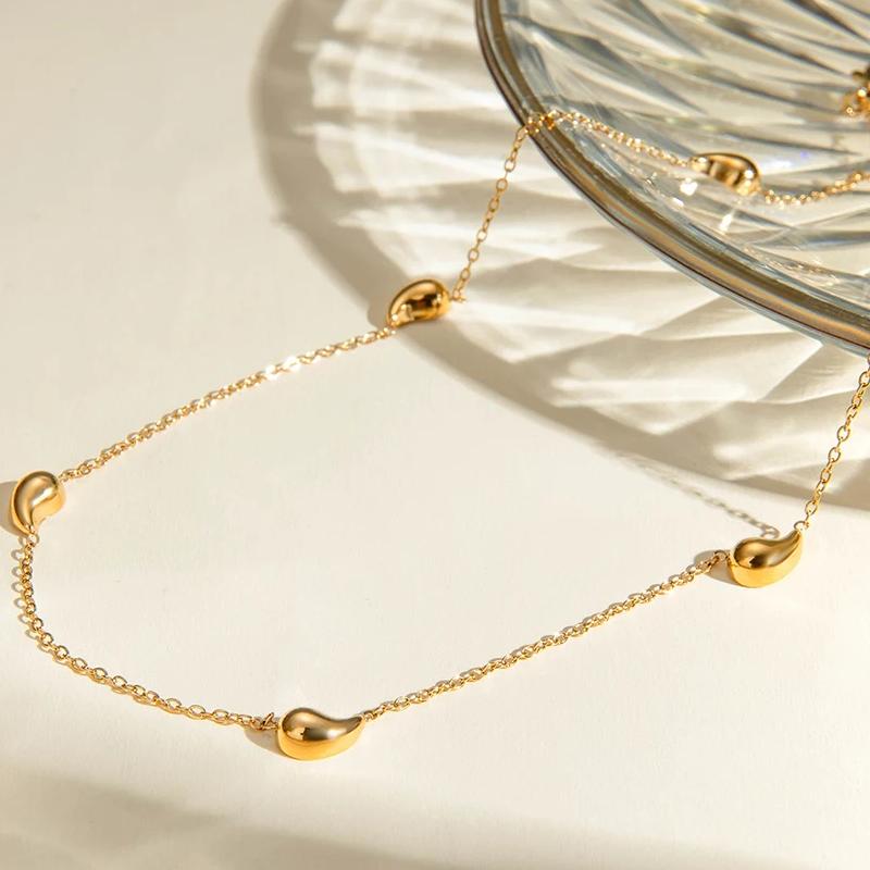 18K Gold PVD Plated Stainless Steel Water Drop Necklace for Women