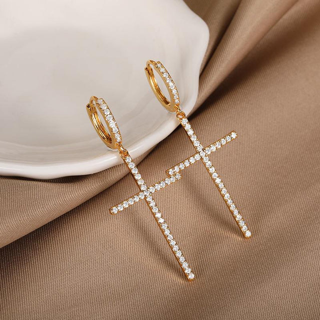 Introducing our Cross Dangle Earrings Earrings, a perfect blend of audacity and classic aesthetics designed for women who dare to stand out. Whether you're looking to make a statement at a party, add a touch of elegance to your everyday outfit, or express your unique style, these earrings are designed to elevate your look with an edge.