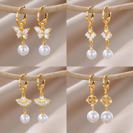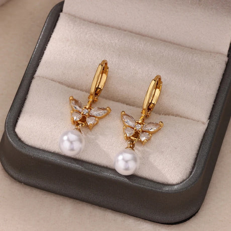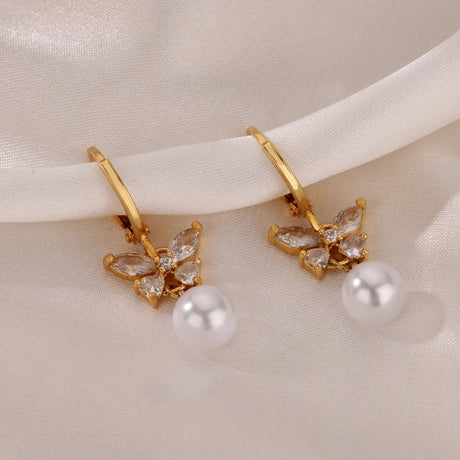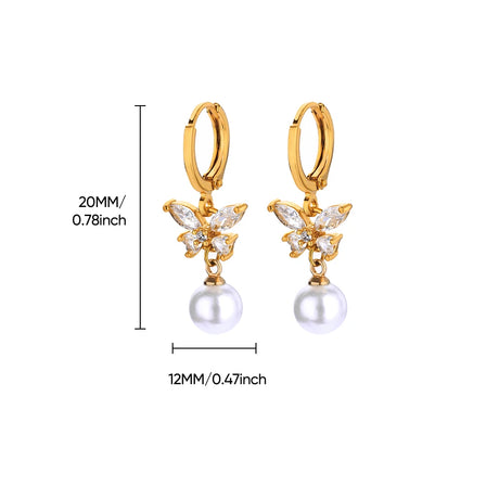 Regular price ¥4,400 JPYUnit price /UnavailableButterfly Imitation Pearl Dangle Earr...