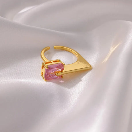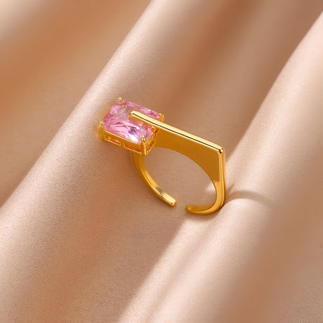 Regular price ¥3,300 JPYUnit price /UnavailableTrendy Pink Square Zircon Gold-Plated...