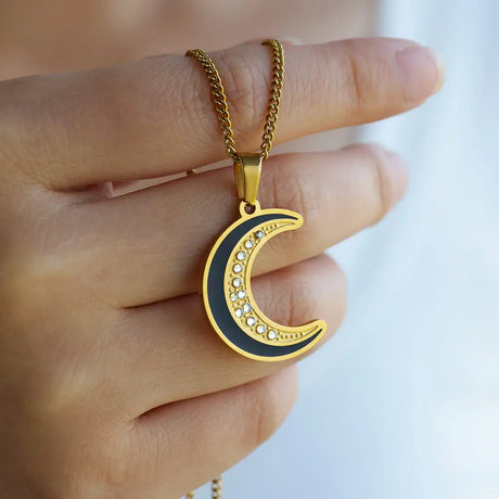 Regular price ¥3,800 JPYUnit price /UnavailableGold Moon Pendant Necklace with Cubic...