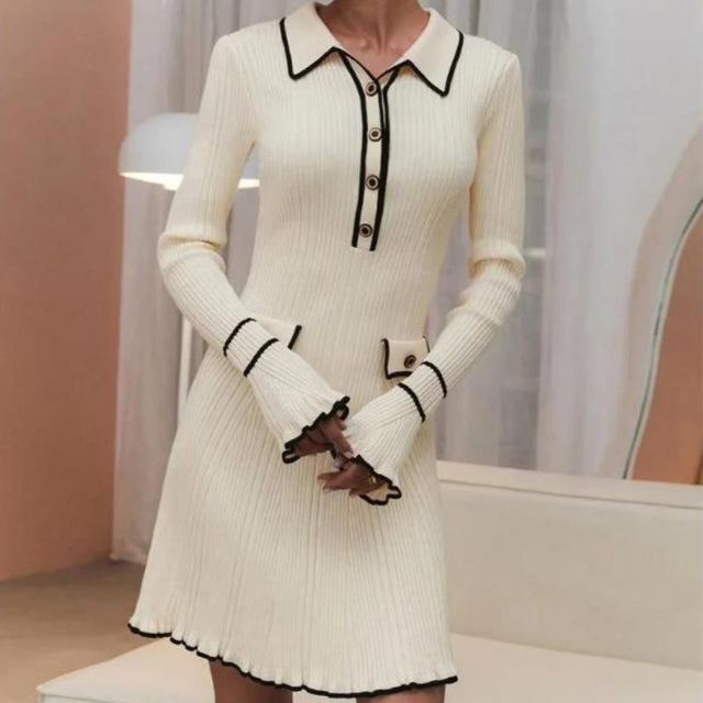 Our Elegant Ruffled Knit Mini Dress stands out for its unique design and practical features. The ruffled fashion knit, combined with a ribbed contrast, adds texture and depth to the dress, making it a statement piece. The high waistline design elongates your figure, while the natural factors waistline ensures a comfortable fit. Additionally, the dress's high stretch fabric accommodates various body types, offering a flattering and comfortable fit.Perfect for Any Occasion