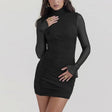 Elevate your style and captivate the room with the Townlike Turtleneck Mesh Pleated Slim Bodycon Dress. This exquisite piece is not just a dress; it's a statement. Designed for the modern woman who embraces her confidence and loves to make a bold entrance, this dress is perfect for those unforgettable nights out.