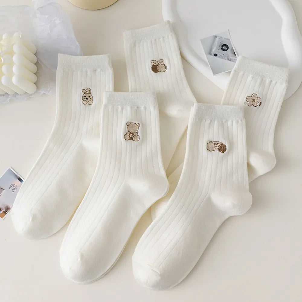 Step into comfort and style with our 5 Pairs Women's Cute Cartoon Socks. Made from premium polyester, these medium-tube socks are designed to keep your feet cozy and fresh, no matter the season. With playful cartoon designs and a snug fit, these socks offer the perfect blend of fashion and function. Whether you're lounging at home or stepping out for the day, these breathable socks will keep your feet warm and comfortable. The middle-tube height adds a stylish touch to any outfit, making them versatile enough for casual everyday wear.