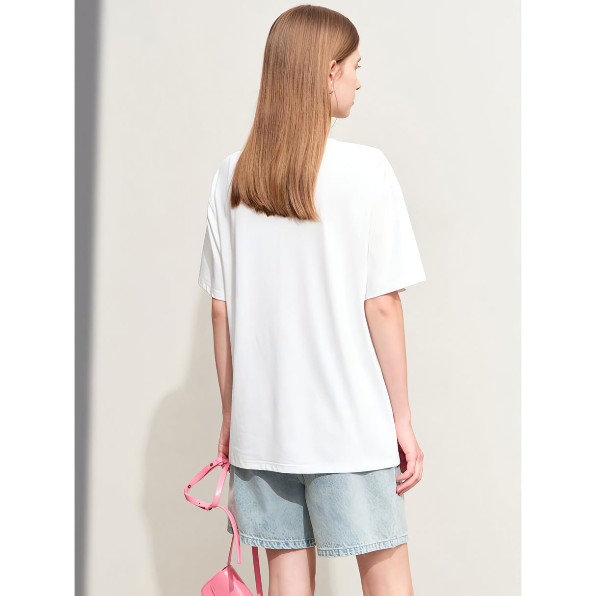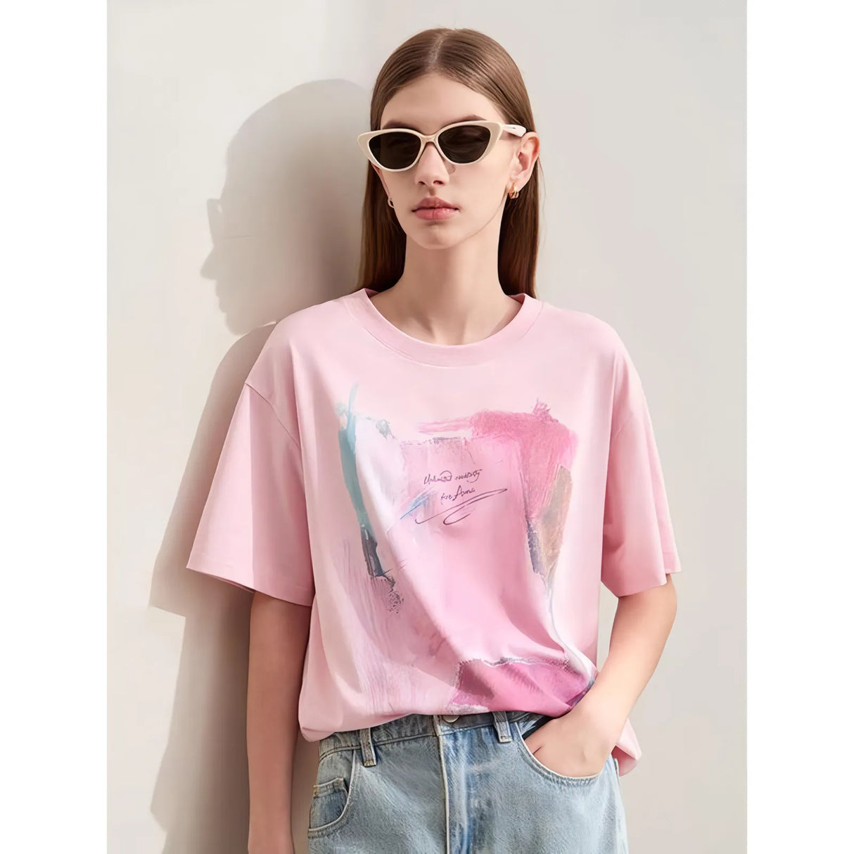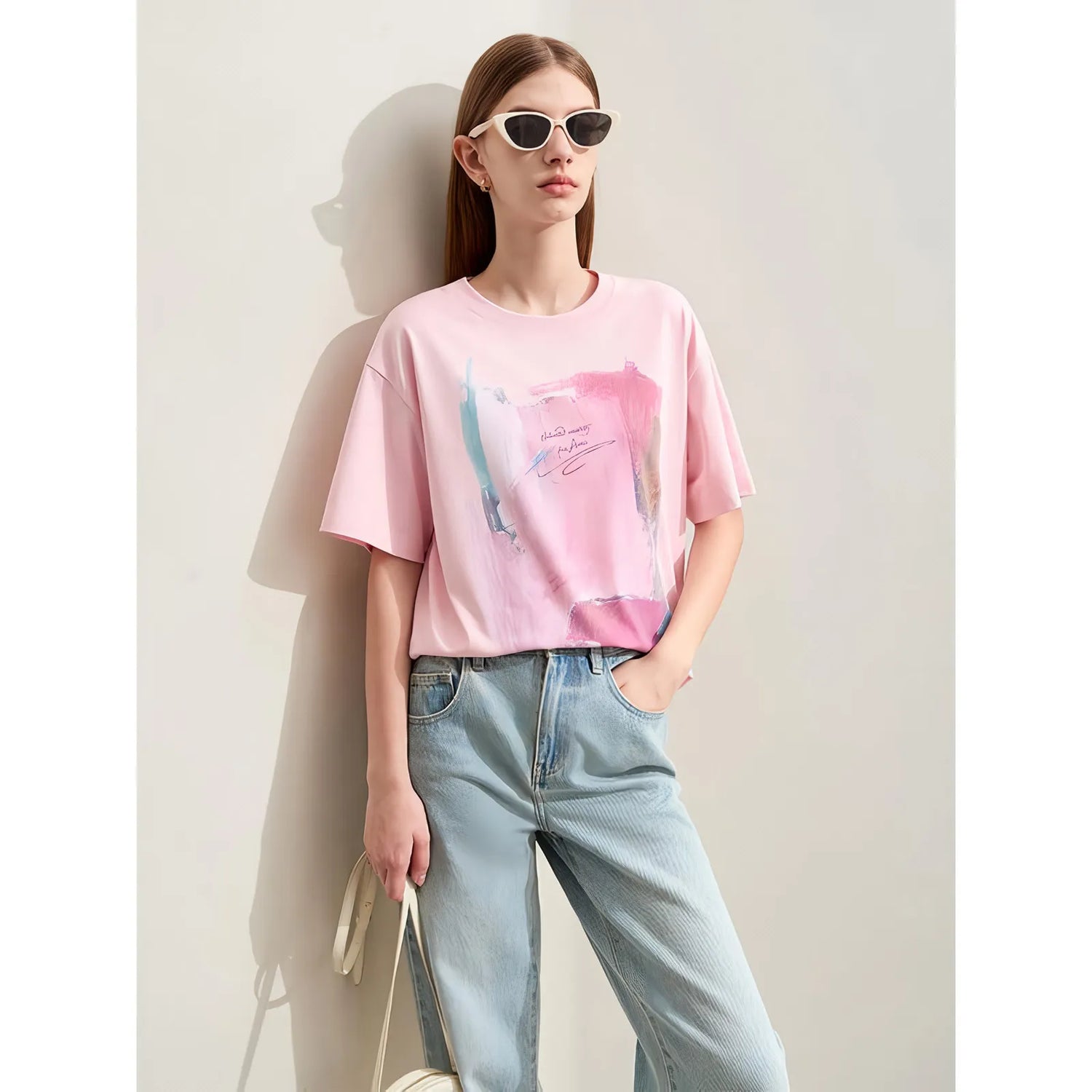 Minimalist Loose O-Neck Abstract Print T-Shirt for Women