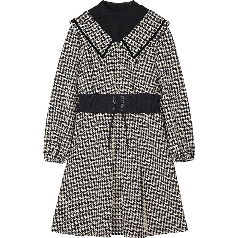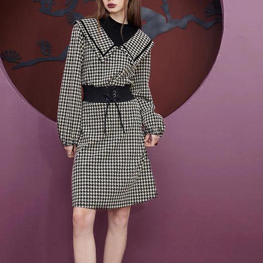 Step into Elegance with the Retro Plaid Long Sleeve Dress