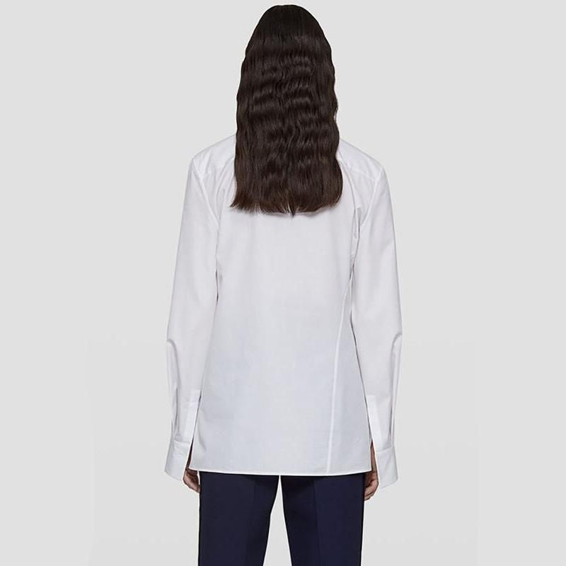 Our blouse boasts a unique asymmetric lapel and a side single-breasted design that adds a contemporary twist to the classic blouse. The solid color pattern, available in timeless white and black, ensures it pairs effortlessly with any outfit. Crafted from a blend of high-quality cotton and polyester, the blouse offers both durability and comfort. Its loose fit design provides a relaxed feel while still maintaining a polished appearance.