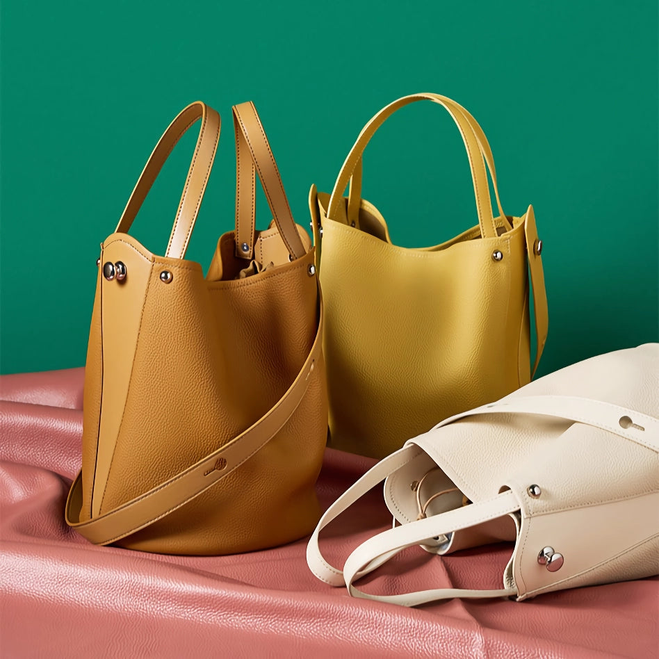 Introducing our Luxurious Genuine Leather Bucket Shoulder Bag, designed for the modern woman who cherishes both style and functionality. Crafted from premium genuine leather, this handbag exemplifies sophistication with its sleek, bucket shape and exquisite patchwork top handle design. Whether you're stepping out for a casual coffee date or gearing up for a day at the office, this shoulder bag transitions effortlessly with your day-to-day activities.