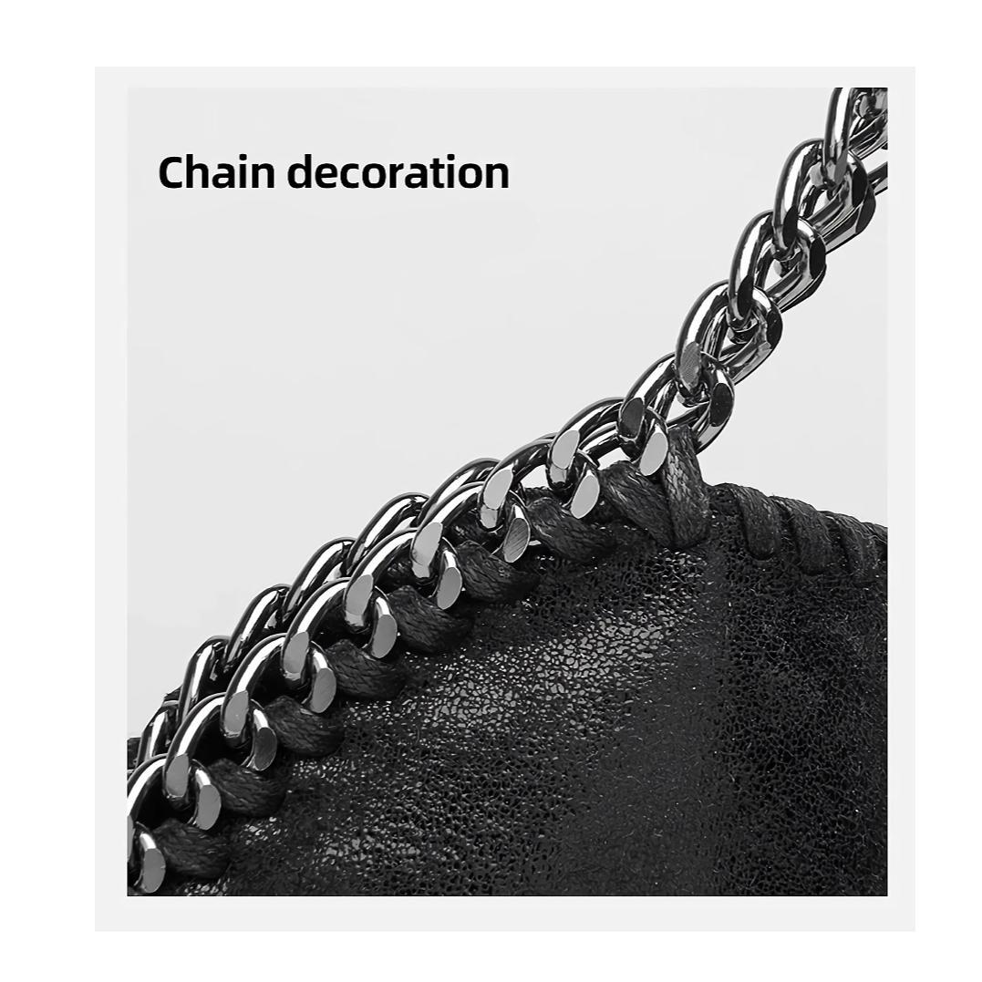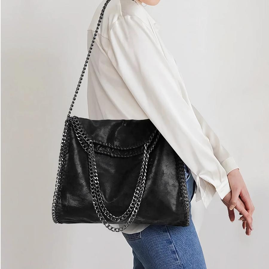 Our tote bag is not just a fashion statement; it's a versatile accessory crafted to stand the test of time. The solid pattern and soft leather construction provide both comfort and style, making it the perfect choice for daily use or special occasions. The elegant chain decoration enhances its vintage charm, ensuring you carry a piece of art every day.