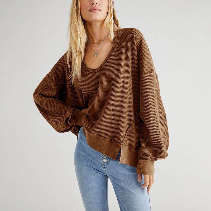 Whether you're enjoying a casual day out or relaxing at home, this sweatshirt is your go-to choice. Its classic design, accentuated by the elegant V-neck, makes it versatile for any casual occasion. The unique open-side feature adds a touch of flair, setting you apart in any crowd. With its oversized design, it offers a modern, streetwear vibe that pairs well with any outfit, making it a must-have in your wardrobe.